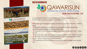 El boletín informativo del Observatorio Qawarisun es una publicación bimensual que tiene como propósito visibilizar las experiencias, saberes y propuestas que emergen de las comunidades andino-amazónicas. En cada edición, compartimos historias vivas sobre el cuidado del agua, la práctica de la agroecología, la alimentación saludable y la lucha por la soberanía alimentaria.